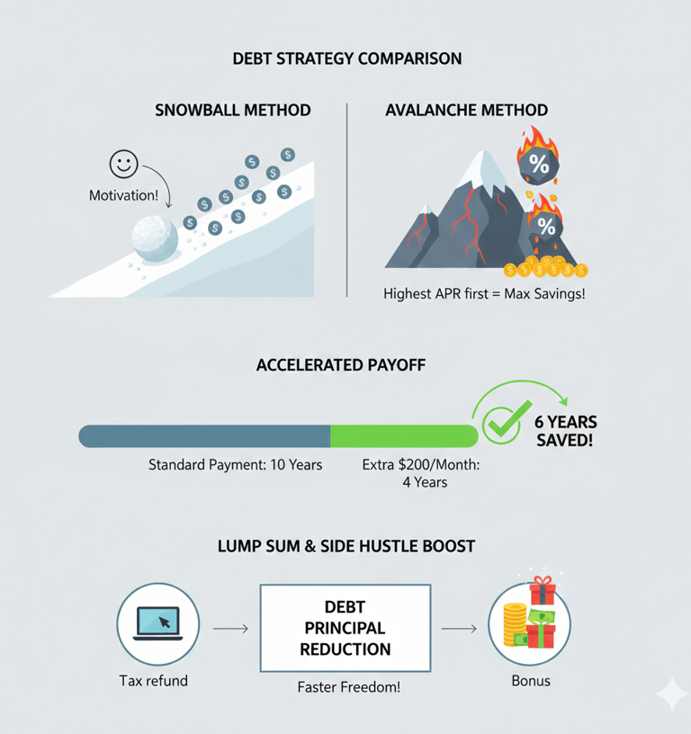 Tax refunds, bonuses, or one-time cash inflows are powerful tools when directed toward high-interest debt.
